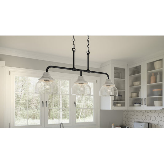 Quoizel Otten 3 Light Island Light, Matte Black/Clear Seedy