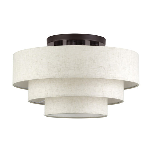 Livex Manorwood 4Lt Extra Large Semi-Flush, Bronze/Oatmeal/White