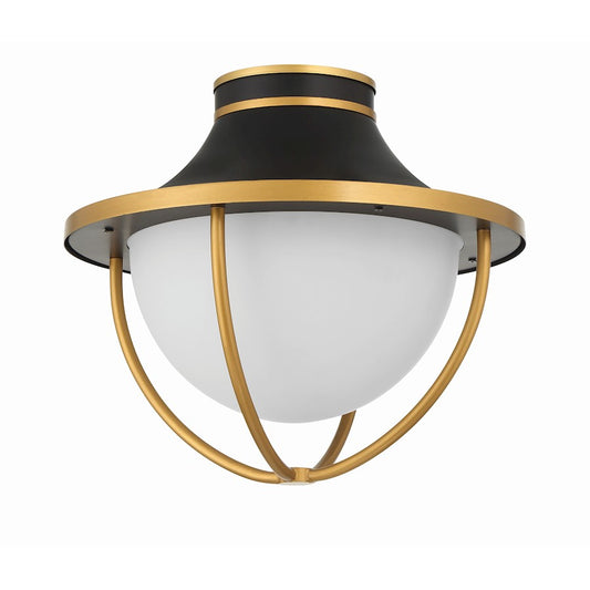 Crystorama Atlas 2 Light Outdoor Semi Flush Mount, Black/Gold/White