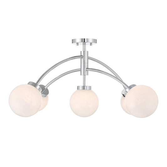 Savoy House Redfield 5 Light Semi-Flush, Chrome/White Strie