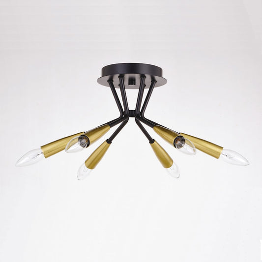 Vaxcel Ellis 6 Light 16.25" Semi-Flush Mount, Matte Black/Satin Brass