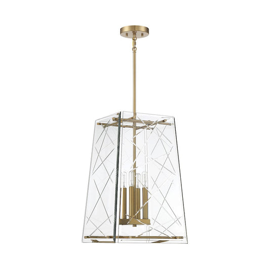 4 Light Pendant, Warm Brass