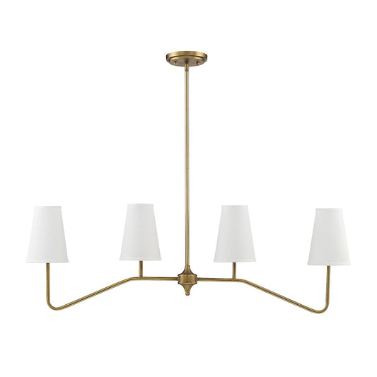 4-Light Linear Chandelier, Natural Brass