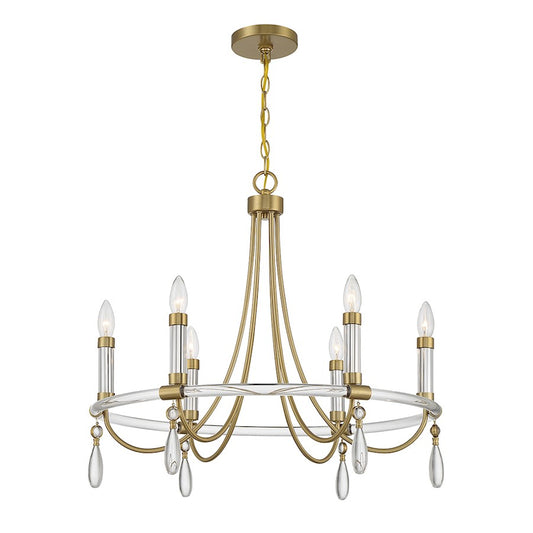 6 Light Chandelier, Warm Brass