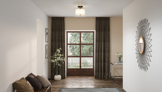 Quoizel Kylen 3 Light Semi-Flush Mount, Black/Egg Shell Fabric