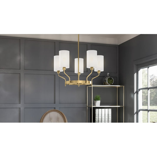 Quoizel Parkington 5 Light Chandelier, Aged Brass/White