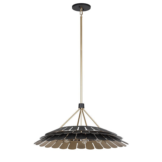 6 Light Pendant, Black/Brass