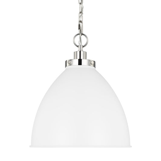 1 Light Med Dome Pendant, WH/Nickel