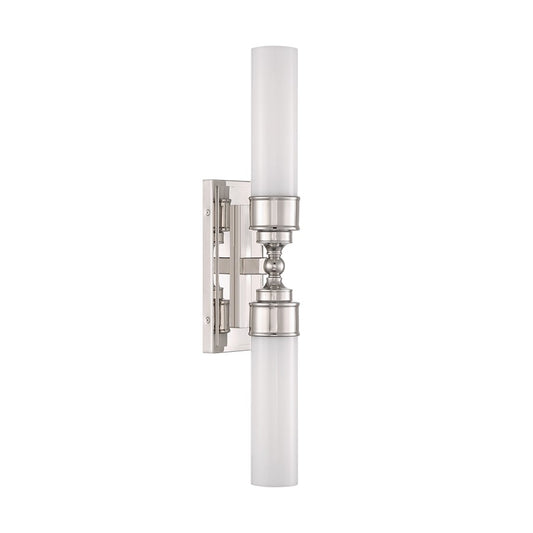 Crystorama Wilcox 2 Light Sconce, Polished Nickel/White