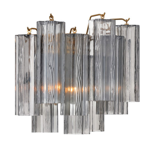 Crystorama Addis 2 Light 12" Sconce, Gray/Brass/Gold/Smoke