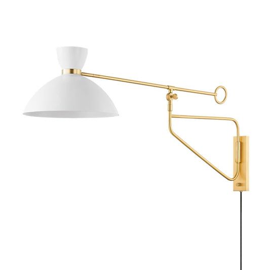 1 Light Wall Sconce, Brass/White