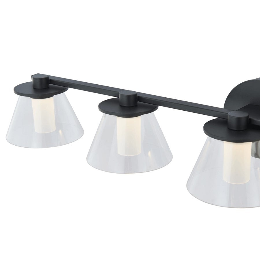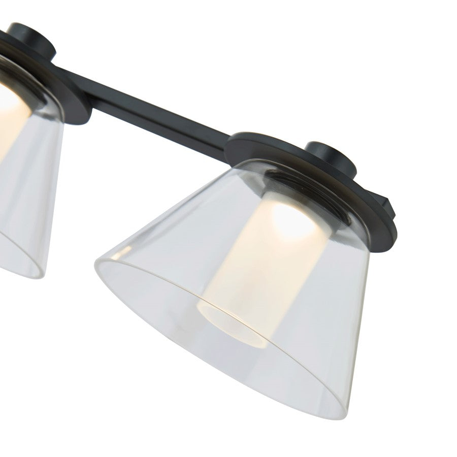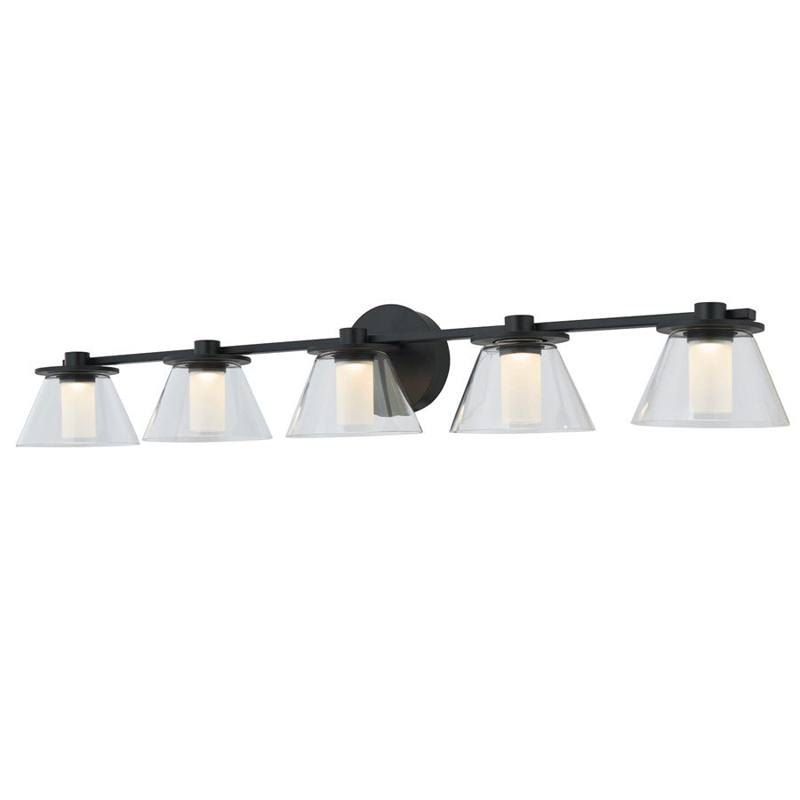 Cone is the perfect balance between beauty and practicality. Five light crystal clear glass cones cascade light downwards with opal glass inner diffusers creating a soft glow. Add a whole new look to your bathroom with this graceful design.