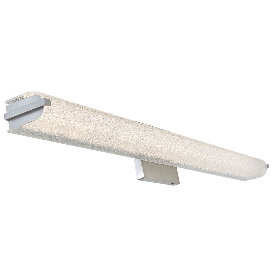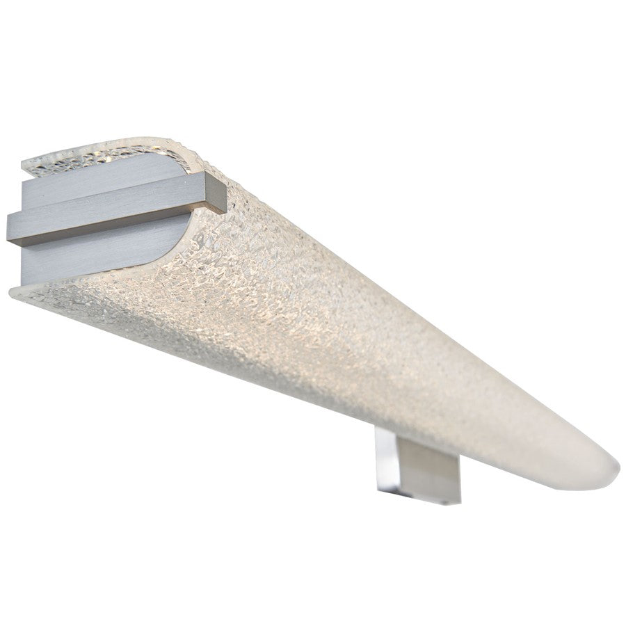 Eco vanity wall fixtures feature a u-shaped piece of artisan-crafted water glass that permits light to radiate with a dazzling effect from the high-output LEDs. Its AC LED light engines are fully dimmable and compatible with most dimmers. Four lengths of Eco are available, a solution for many bathrooms.