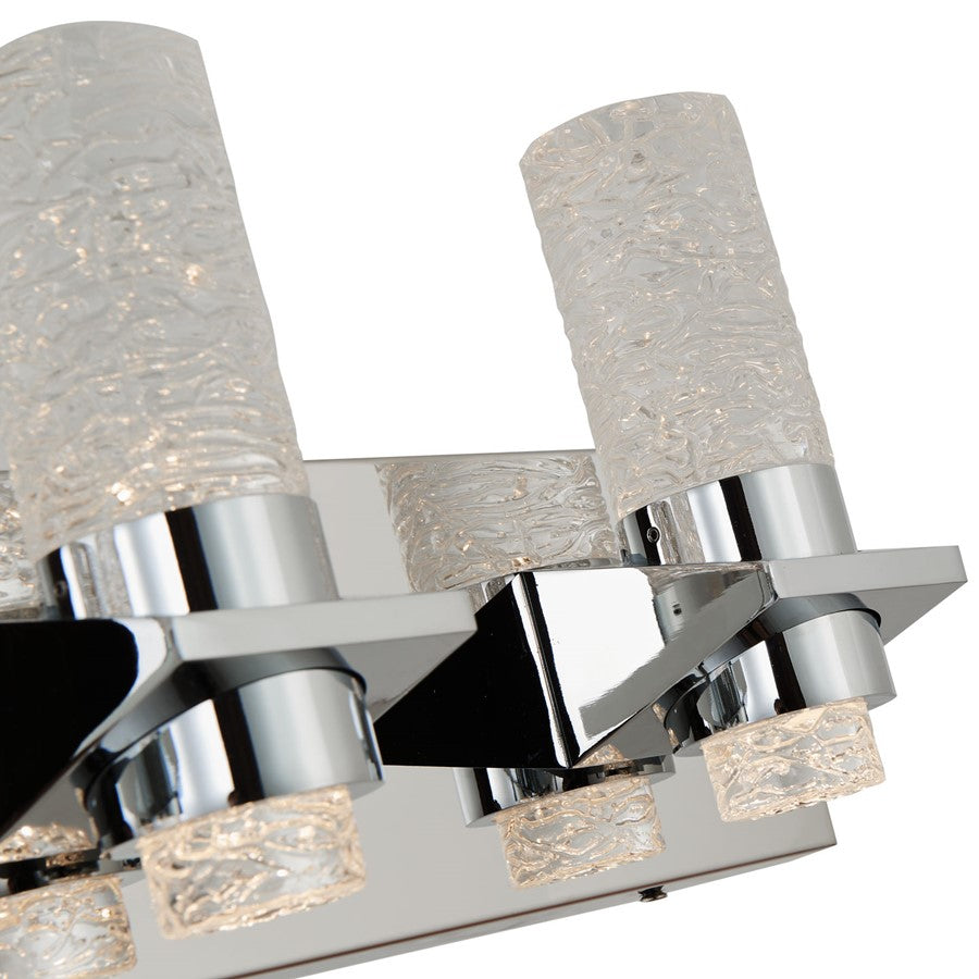 The Krypton series of solid textured crystal glass cylinders supported on angled metal frame and the glass cylinders are each illuminated by two 3.5w LED modules creates a dramatic effect and oozing charm, a throw back to the 1920’s avant-garde era of exuberance and luxury.
