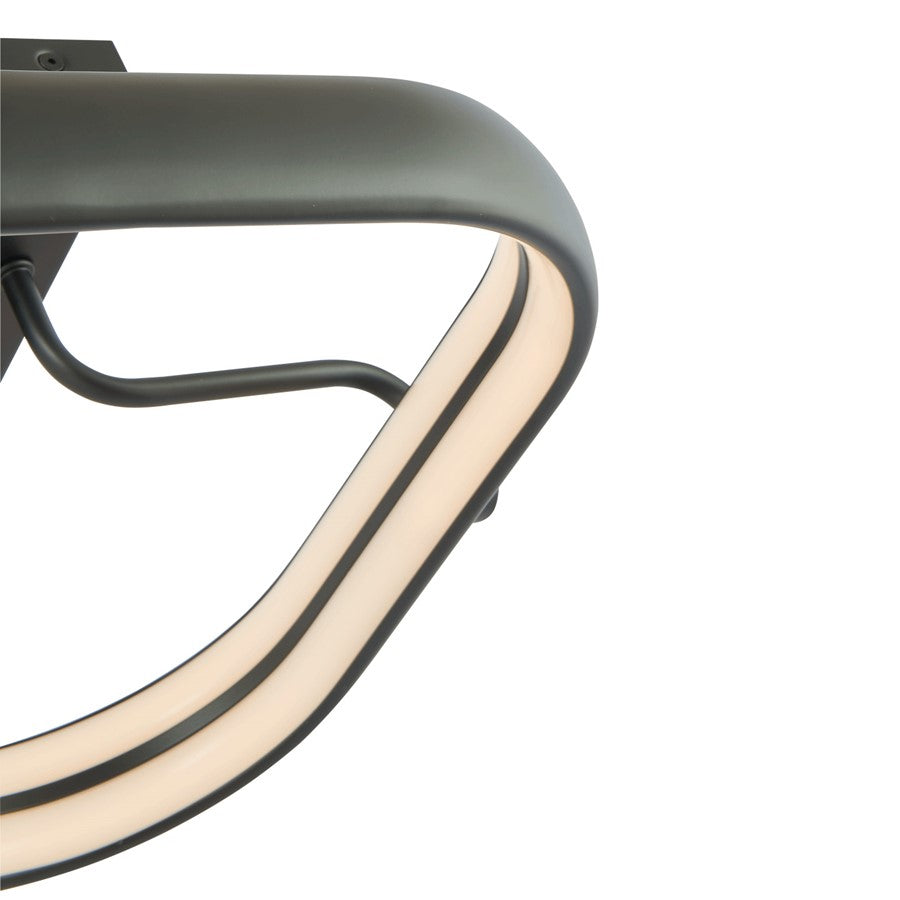 Rave is a unique flushmount featuring a suspended rounded square which outputs light internally. Add a splash of style to your kitchen, dining area, or hallways with this one of a kind fixture.