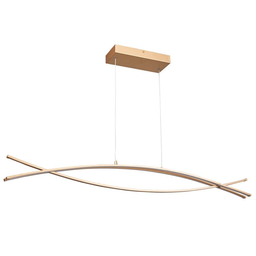 An ideal compliment to a contemporary dining or kitchen island, the sleek and delicate wishbone pendant with crossed bowed LED arms