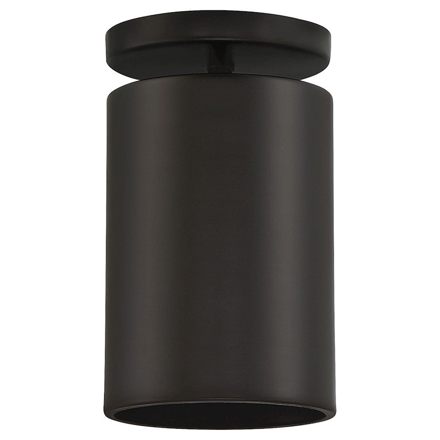 Resembling a mason jar or pint, this energy-efficient outdoor semi-flush ceiling light offers both an industrial and contemporary feel. A slim round base fits snug against the ceiling, followed by a spatial gap illusion and a cylindrical shape with a matte finish that accents any outdoor space.