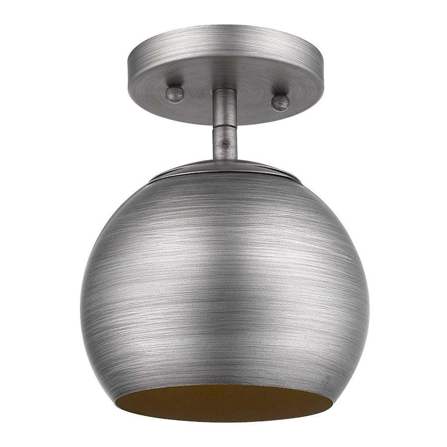 Update Your Space With The Modern Industrial Style Of Latitude. A Hand Painted Metallic Shade Of Steel Is Complemented By A Gold Interior That Produces Warm Illumination. A Silver Cord Suspension Completes This Masculine Design.