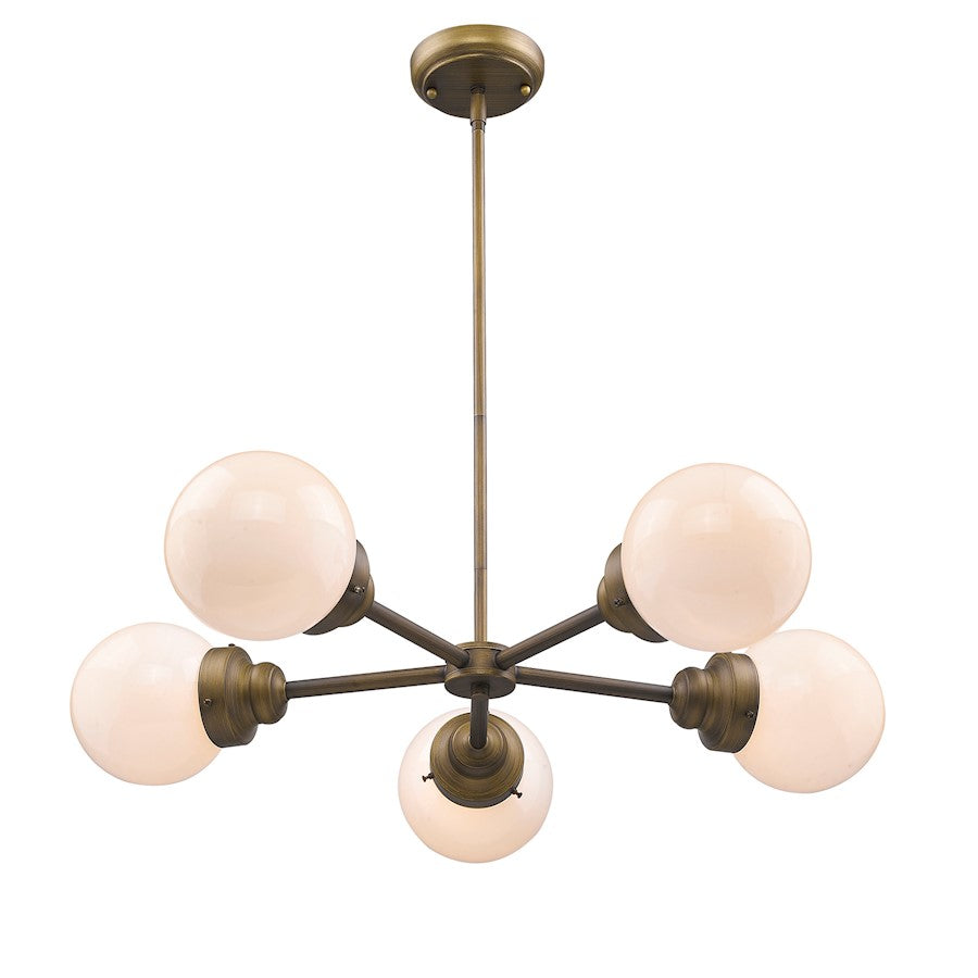 Retro Or Avant Garde? Outreached Horizontal Arms Of Raw Brass Are Complemented By Shiny Opal Glass Globes. A Simple Yet Bold Design.