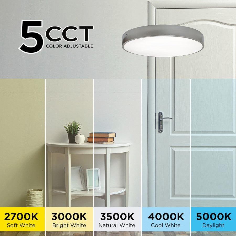 Part of the Bailey CollectionFinish: Satin NickelMade of SteelShade Finish: Satin NickelShade Made of SteelColor: SilverShade Shape: RoundStyle: Modern(1) 45W Integrated LED Bulb(Integrated LED) TrueW Bulbs Included BulbBulbs IncludedBulb Color Temp: 2700K/3000K/3500K/4000K/5000KBulb Average Hours: 50,000 hrs.Bulb Lumens: 4500Bulb CRI: 90Voltage: 120-277VSocket Type: Integrated LED5-in-1 CCTDimmableTitle 24System Type: HardwiredProduct Care: Dust with a soft dry cloth.Dimmable: YesProp 65: WARNING: This product can expose you to lead, which is known in the State of California to cause cancer, birth defects or other reproductive harm. For more information go to www.p65warnings.ca.gov.Required Assembly: Partial AssemblyCommercial/Residential Use: BothFor Use in Damp LocationsSafety Rating: ETL/CETL ListedWarranty Info: 5 Year LimitedOverall Dimensions: 4"(H) x 30"(Dia)