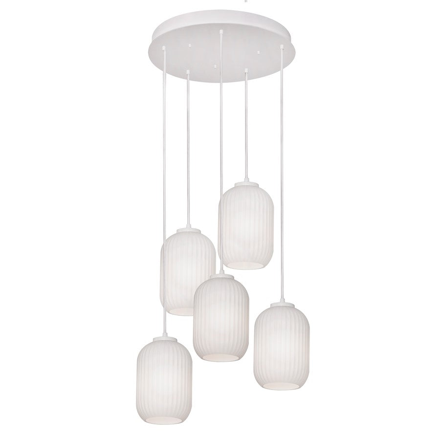 Brighten up the look and feel of your kitchen or dining room space with the AFX Callie 3 or 4 or 5 Light Round Pendant. This stylish pendant light is built with a white glass frame and beautiful shade, perfect for a modern design scheme. Use this hardwired light to refresh your indoor lighting scheme.