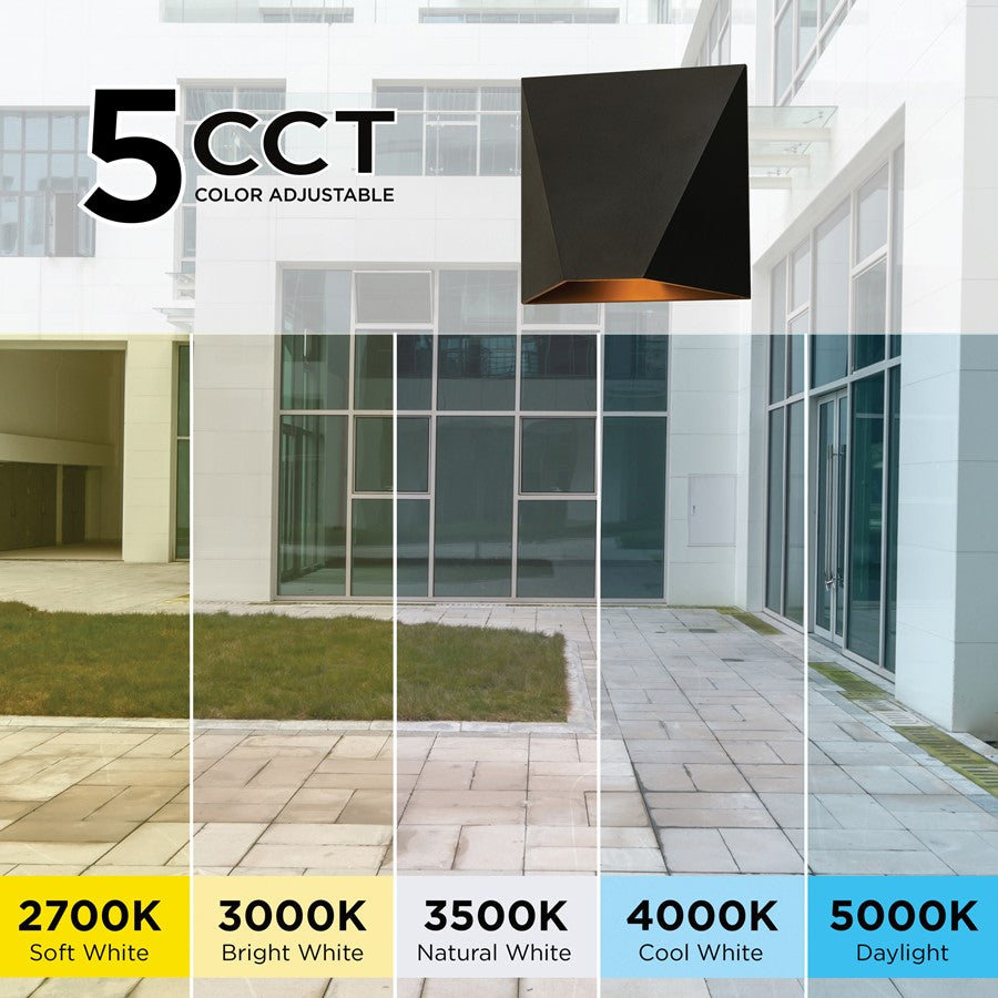 Brighten up your home's exterior with the AFX Kylo Outdoor Wall Sconce. This outdoor wall light sports a unique geometric trapezoid design and has adjustable color temperature functionality. This light is the epitome of versatile, as it can be mounted in an upward or downward position. Use this outdoor wall sconce to brighten up your porch and entryway spaces.