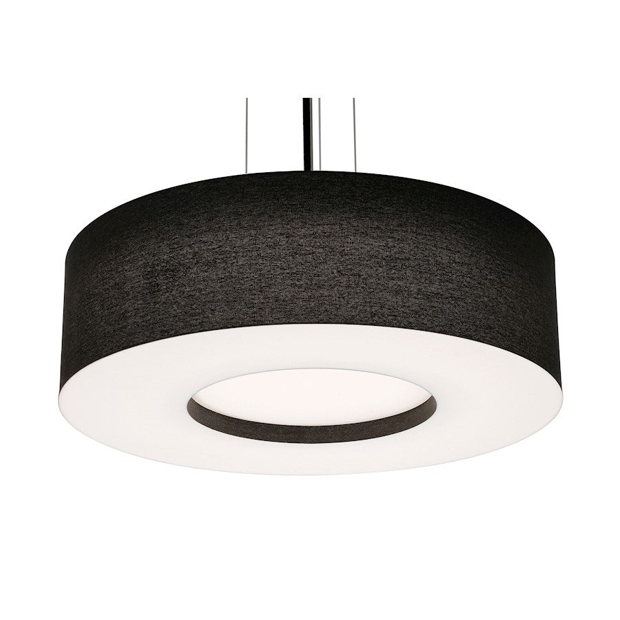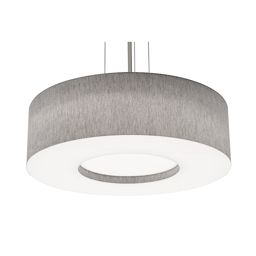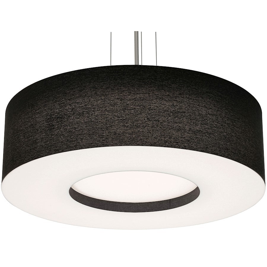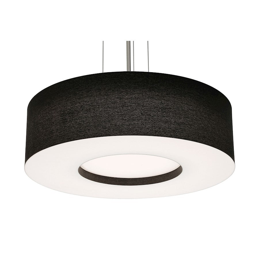 Modern single drum pendant features LumaFuse laminated fabric/acrylic shade that is durable and easy to clean. Stepped white bottom acrylic diffuser disperses the light evenly. Available in two colors. 3 ft. adjustable ridged stem and aircraft cable.