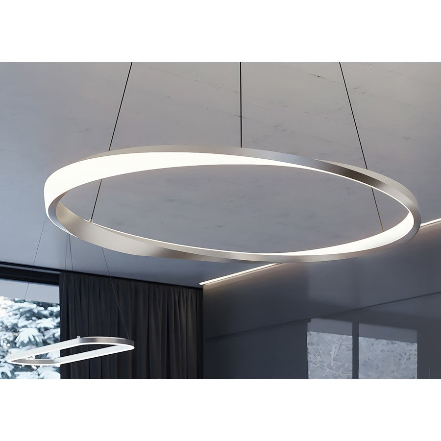 The Oberon LED Pendant combines artistic circular design with advanced lighting technology to bring both style and function to your kitchen or dining space. With a 40” diameter, this sleek pendant features an integrated LED light source delivering 780 lumens of crisp, illumination in selectable color temperatures from warm 2700K to bright 5000K. Its white acrylic diffuser softens the light for a comfortable ambiance. Compatible with multiple dimming types, including 0:10V and TRIAC/ELV, and backed by a 5:year warranty, the Oberon offers both elegance and reliability with an impressive 50,000:hour LED lifespan.