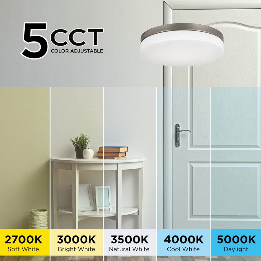Part of the Oscar CollectionFinish: Satin NickelMade of SteelShade Finish: Satin NickelShade Made of SteelColor: SilverShade Shape: RoundStyle: Modern(1) 35W Integrated LED Bulb(Integrated LED) TrueW Bulbs Included BulbBulbs IncludedBulb Color Temp: 2700K/3000K/3500K/4000K/5000KBulb Average Hours: 50,000 hrs.Bulb Lumens: 3500Bulb CRI: 90Voltage: 120VSocket Type: Integrated LED5-in-1 CCTDimmableTitle 24System Type: HardwiredProduct Care: Dust with a soft dry cloth.Dimmable: YesProp 65: WARNING: This product can expose you to lead, which is known in the State of California to cause cancer, birth defects or other reproductive harm. For more information go to www.p65warnings.ca.gov.Required Assembly: Partial AssemblyCommercial/Residential Use: BothFor Use in Damp LocationsSafety Rating: ETL/CETL ListedWarranty Info: 5 Year LimitedOverall Dimensions: 3"(H) x 19"(Dia)