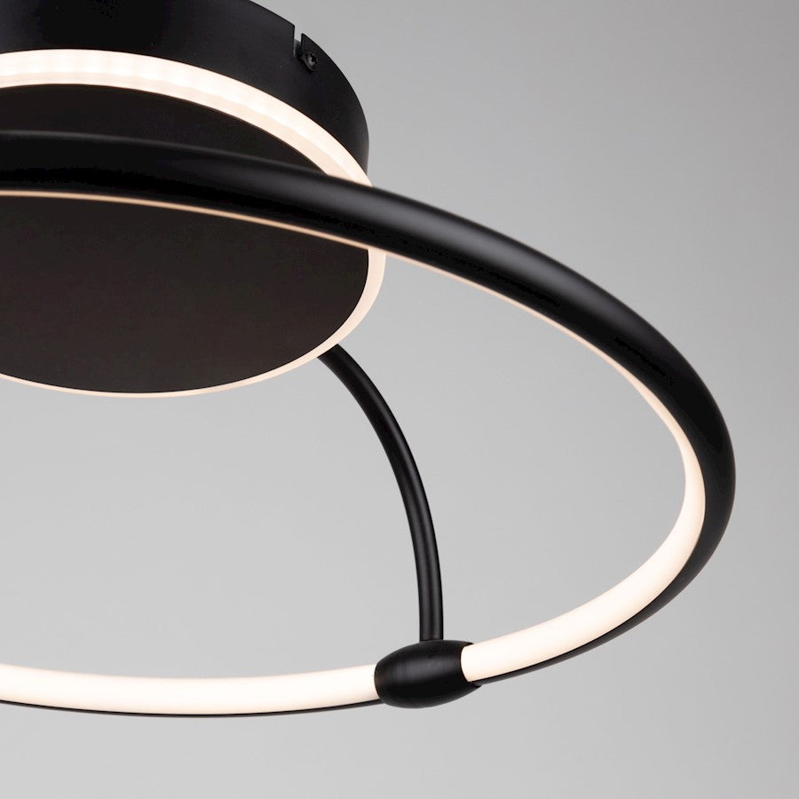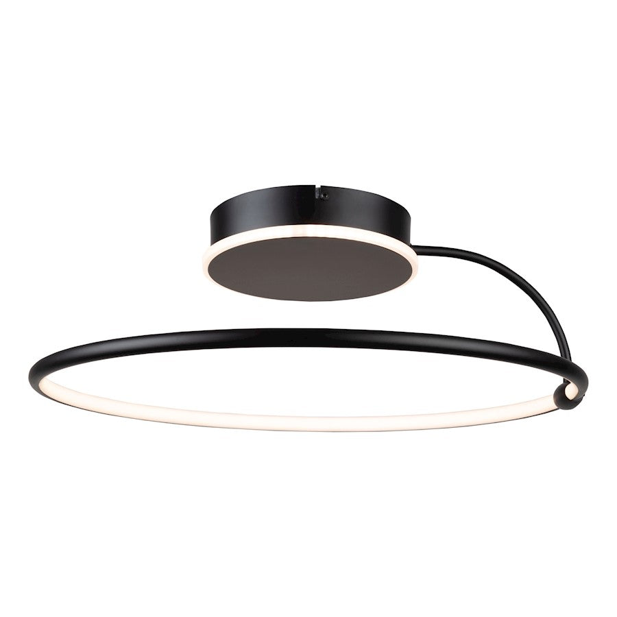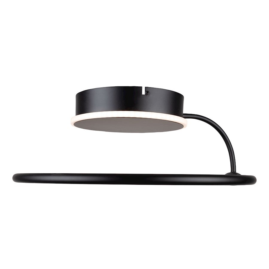The Halo collection of semi flushmounts are all unique in their own ways. This model is finished in a semi gloss black. It has a thin arm that gives the illusion of a floating bottom ring. Both the main bottom ring and the canopy light up with bright energy efficient LEDs.