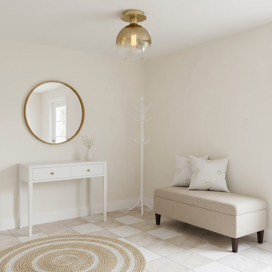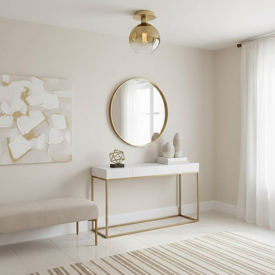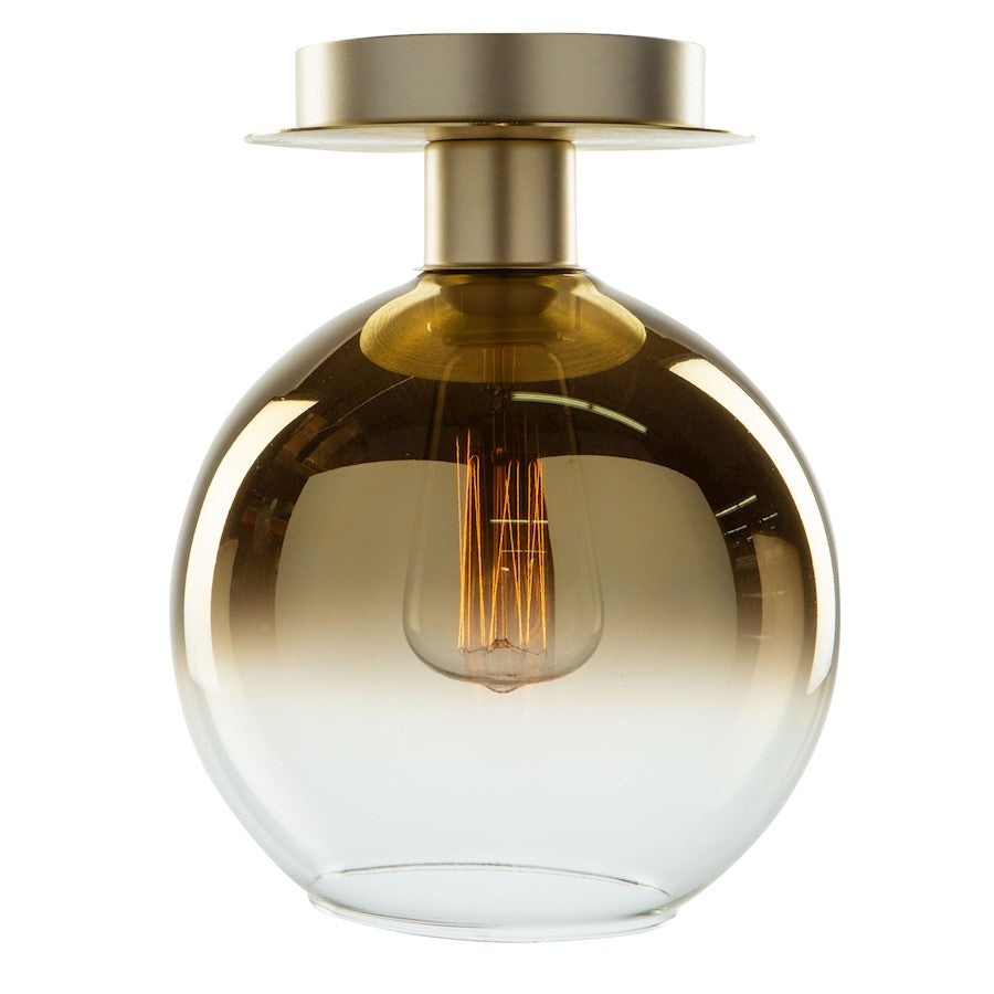 From designer Steven Sabados [S&C], the "Morning Mist Collection" is an instant classic. The glassware is so unique in that the bottom is clear but as you reach the top part of the sphere it is plated with a gold semi transparent mirror. The frame is finished in a matte brass. The black wires are all height adjustable. This series has multiple configurations. Model shown is the flush mount.Hanging Length (Min-Max): 10-10 Hanging Length (Min-Max): 10-10