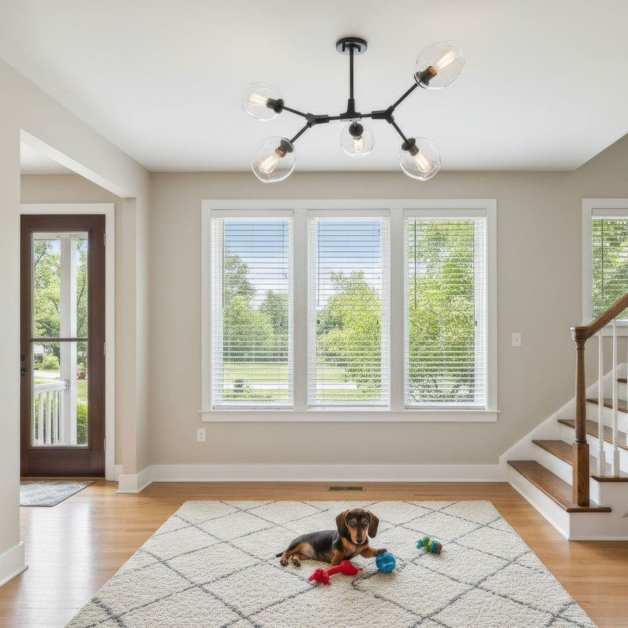 The "Organic" collection features a dimple clear glass suspended on a multi direction black frame or a black frame with vintage brass accents. All arms can be adjusted to a desired configuration. (Best suited with a vintage bulb - not included)