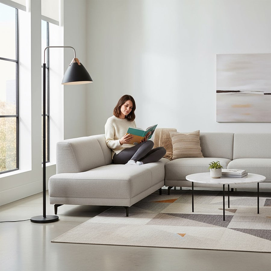 From designer Steven Sabados of S&C, the Tote collection is a definite fashion trend for your home or office décor. The matte black metal shades are suspended to the wiring with leather straps. The interior of the shades have a super reflective white finish for maximum light functionality. Two finishing touches for this design are the polished nickel accents, and the textile black wiring coverings. What a stunning floor lamp. (This collection has several hanging pendant options)