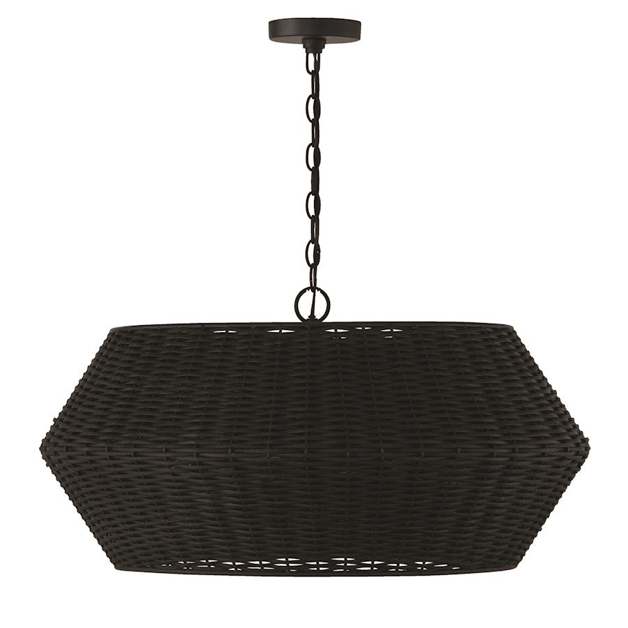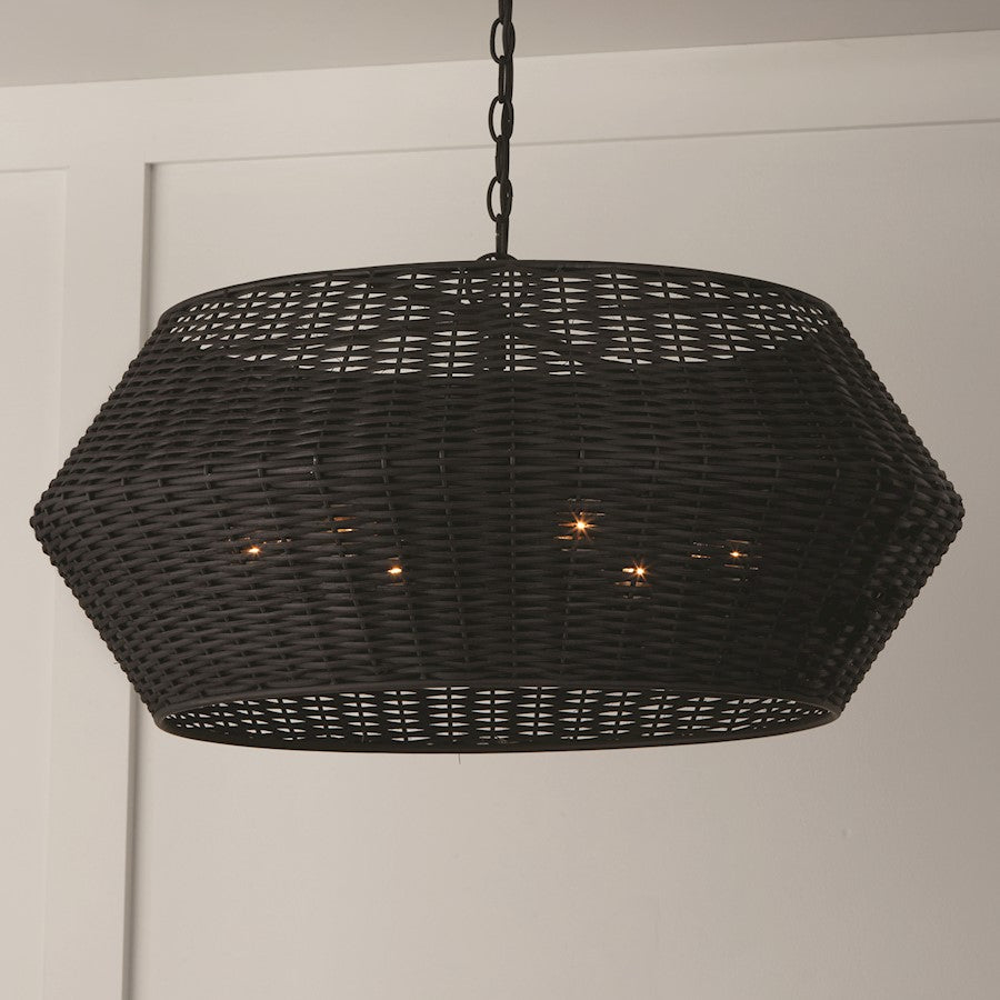 Timeless materials meet modern forms in the Boca Pendant. The handcrafted woven rattan adds dimension to the angled silhouette, while the hand-painted Matte Black or Chalk White finish offers a dramatic aesthetic.