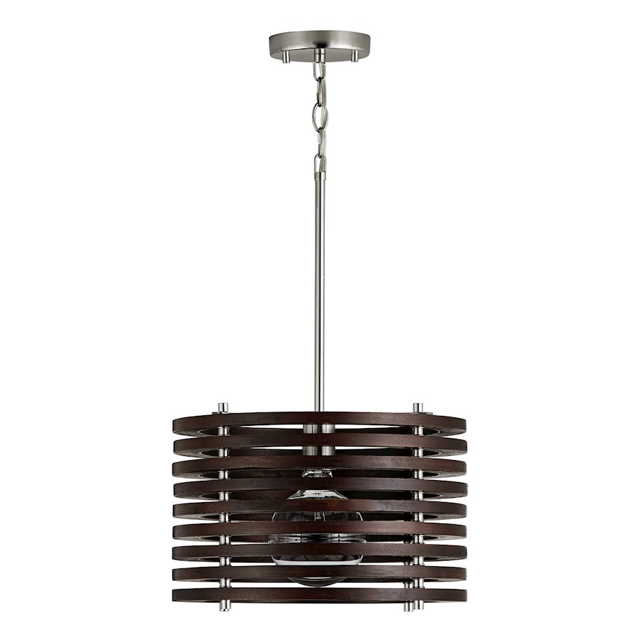 - APPLICATIONS: Perfect for use in foyer entryways, dining room, kitchens, stairway. Stunning gray iron fixture with gray wash wood, hand-wrapped in rope to create a distinctive, organic look, Designed for smaller spaces, this fixture sports a geometric traditional design in a brushed nickel finish.