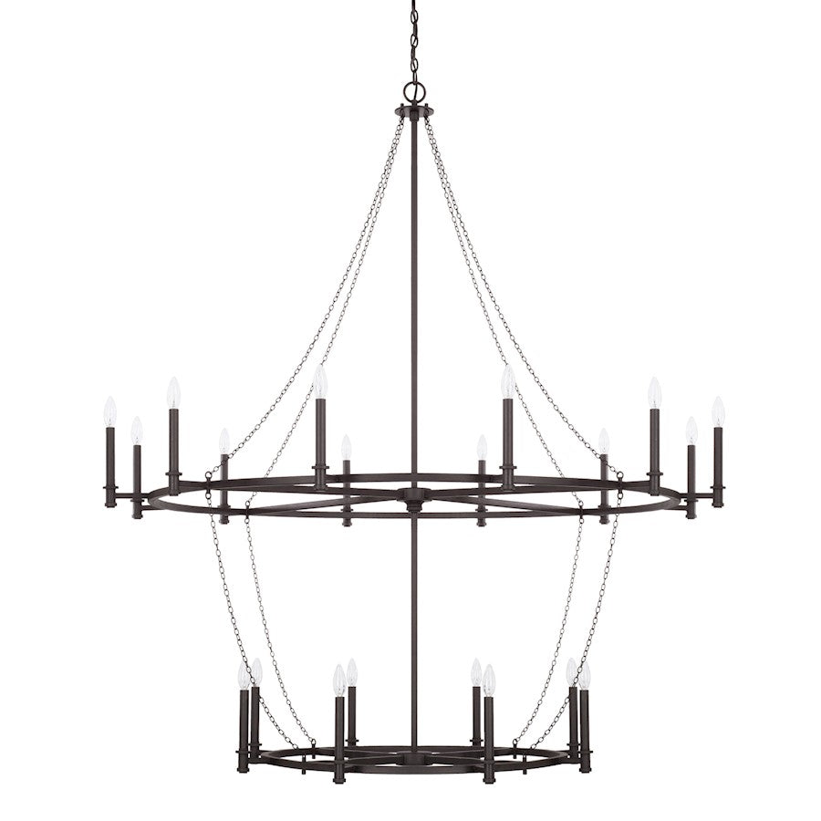 Boasting an elegant barrel shape and airy form, the Lancaster chandelier embodies the modern farmhouse aesthetic. Perfect for a living room, dining room or great room, this tiered chandelier draws from Tuscan and Spanish design elements and melds them with industrial detailing for distinctive character.