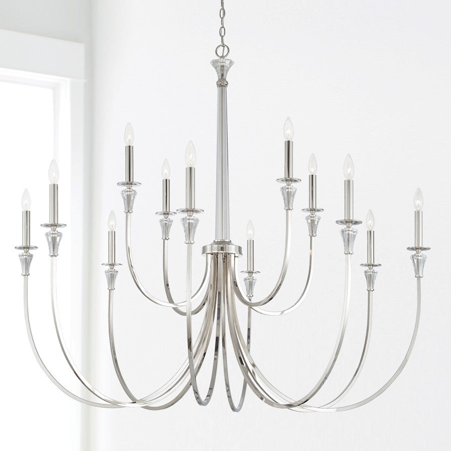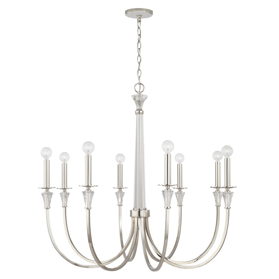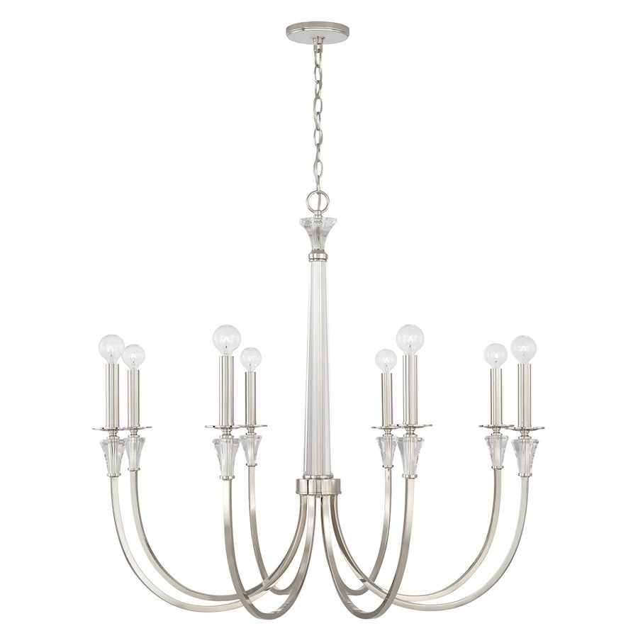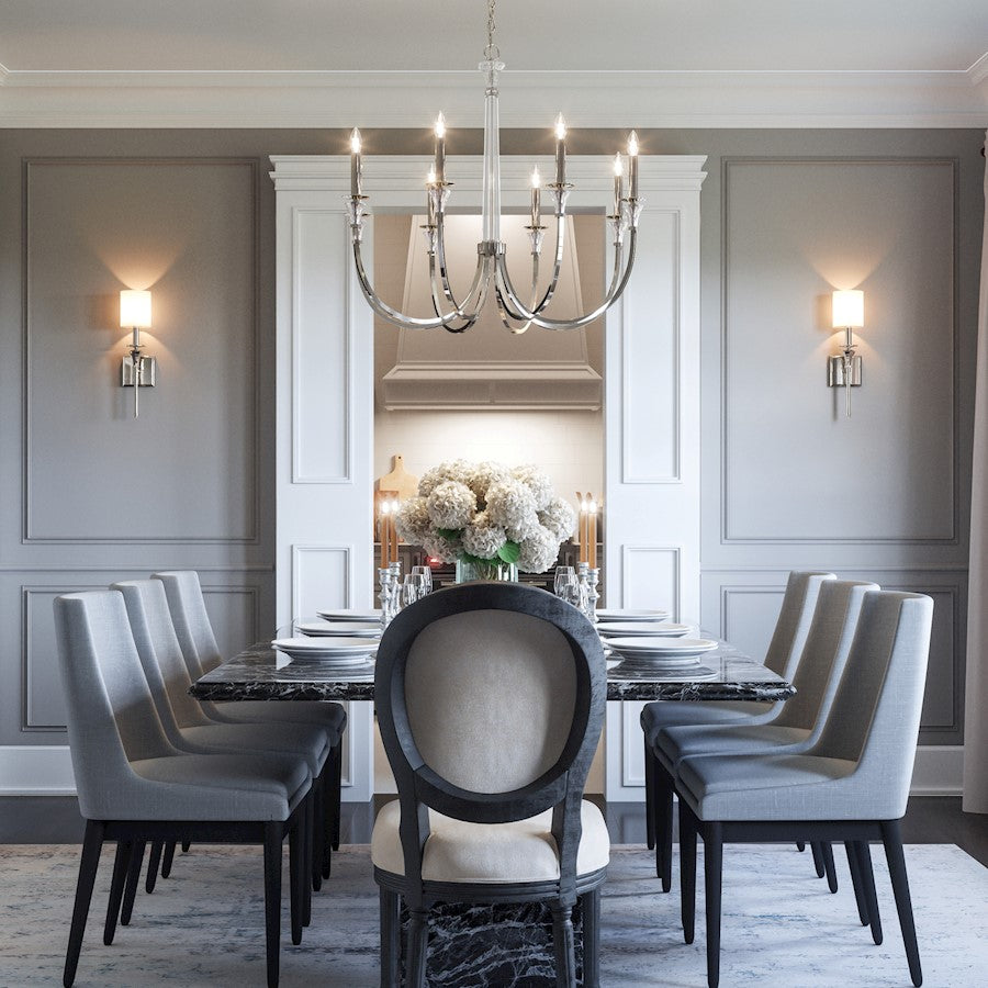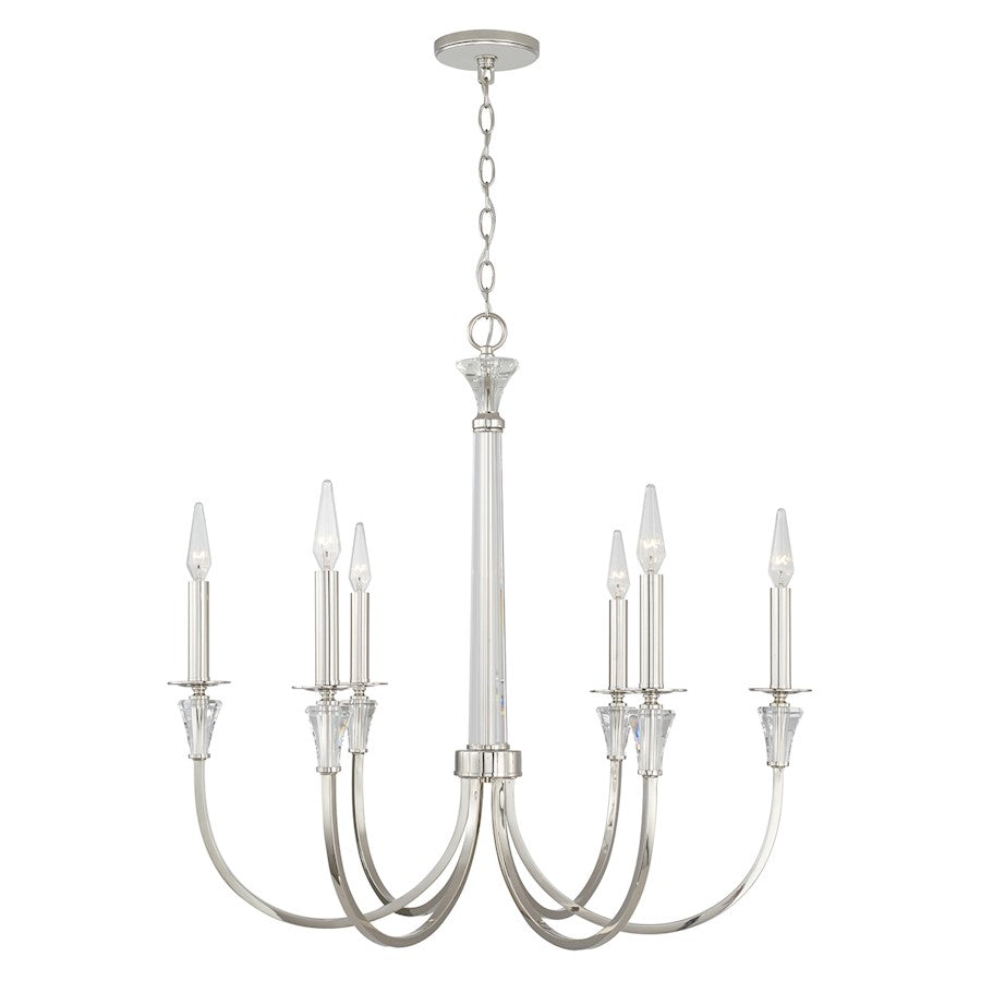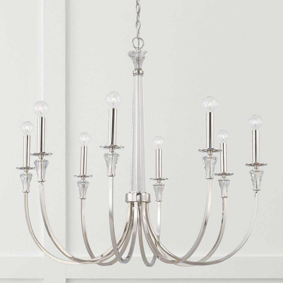 High-fashion meets high-shine with the Laurent Chandelier. The classic curves, crystal accents and reflective Polished Nickel finish give any space the look of runway glamour.