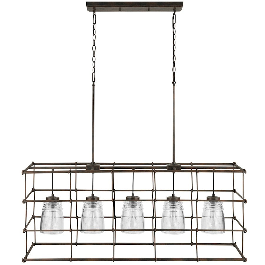 Five Clear Ringed glass shades punctuate the cage-style, linear Turner island light. Ideal for a rectangular dining table or kitchen island, this fixture offers a touch of farmhouse and coastal style inspiration as it illuminates. The frame is finished in a visually textured Nordic Grey.