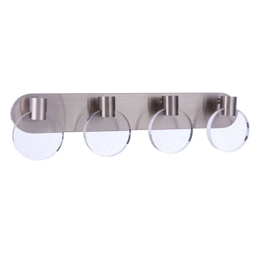 The Glisten Collection by Craftmade featuring round clear fizz glass captured in a cylinder bracket makes a statement that is both stunning and functional. The damp rated Glisten streamlined styling offers up or down mount capability, dimmable and an energy efficient LED light source.