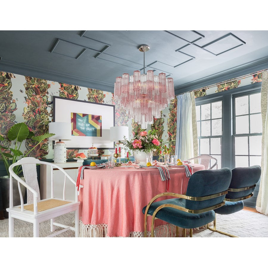 The captivating Addis Lighting Collection is a modern-day interpretation of the iconic mid-century Tronchi chandelier. Inspired by its predecessor's sleek lines and geometric shapes, the Addis features a polished Chrome or Aged Brass metal frame that exudes sophistication and style. Its unique design showcases transparent tiers of textured Tronchi glass tubes, forming a mesmerizing 5-point rounded star shape. Choose from a range of glass colors, including clear, amber, smoke, and white, or the stunning Autumn option, which features a captivating multicolor disposition of amber, clear, and smoke Tronchi glass. The Addis Lighting Collection offers various sizes and finishes, allowing you to find the perfect fit for your space while adding a touch of timeless elegance.