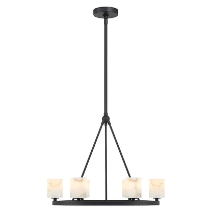 Finely crafted with great attention to detail, the Aragon Collection is a mix of industrial meets modern style. The Matte Black minimalist look includes rods attached to a large frame, accented with precision cut stone and packed-in G9 Dimmable LED Bulbs, (rated at 3000K, 400 lumens and CRI 80).