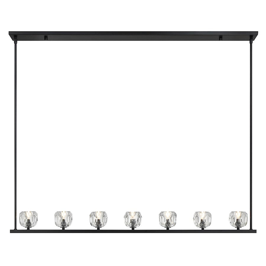 Finely crafted with great attention to detail, the Aragon Collection is a mix of industrial meets modern style. The Matte Black minimalist look includes rods attached to a large frame, facet-cut crystal globes and packed-in G9 Dimmable LED Bulbs, (rated at 3000K, 400 lumens and CRI 80). This functionally timeless fixture can be hung with upward or downward-facing light giving you the flexibility to choose how you would like to set the mood of the room.