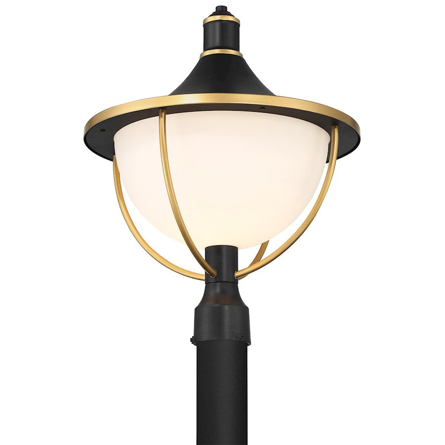 The Atlas Outdoor Collection effortlessly elevates your home's exterior with a perfect blend of modern aesthetics and classic charm. This collection features white glass with a two-tone matte black and gold finish, delivering a premium look that enhances your home's curb appeal. The bowl-shaped white glass body, crowned by an inclined metal structure, creates a balance of form and function. Gold-arched rods gracefully contrast against the pristine white glass, adding a touch of sophistication to your outdoor spaces.
