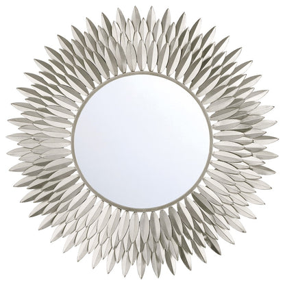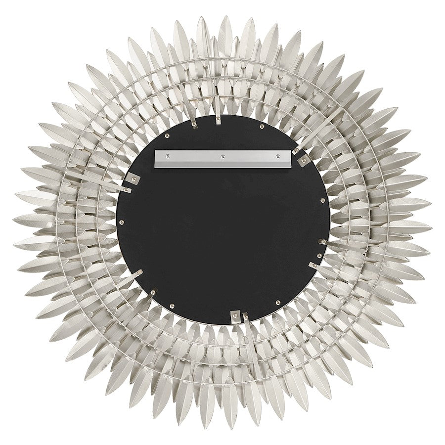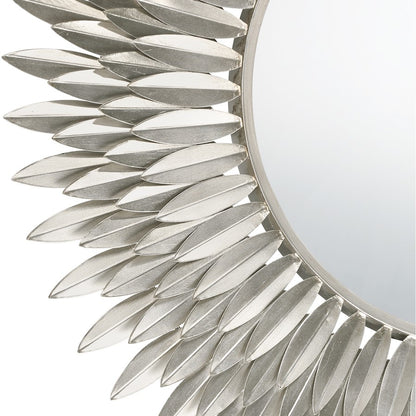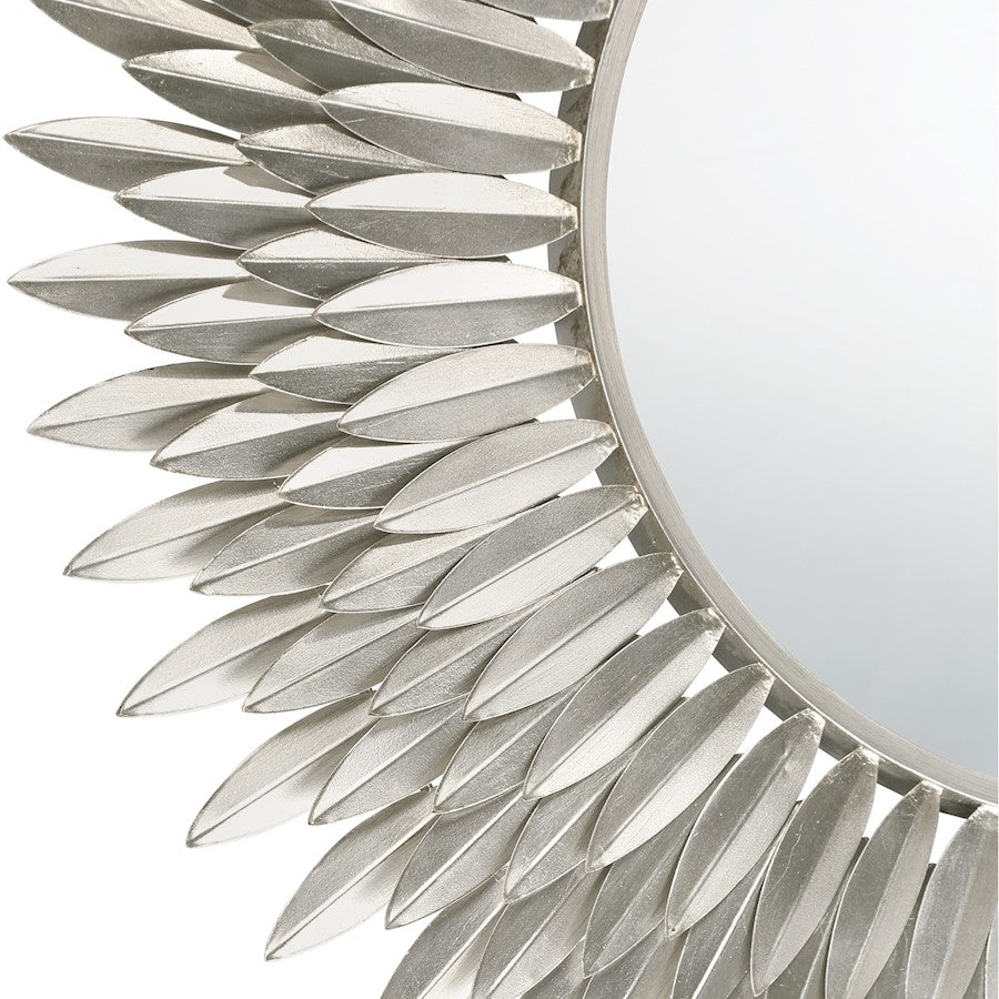 Inspired by Crystorama’s iconic Broche Collection, this stunning mirror brings sculptural artistry to wall décor. The mirror features a radiant sunburst design with hand-forged metal leaves arranged to evoke elegance and organic beauty. The intricate leaf-shaped detailing channels a refined sense of nature-inspired aesthetics, adding warmth and charm to any interior. This mirror is ideal as a focal point in entryways, living rooms, or bedrooms, and it pairs beautifully with contemporary and classic design styles.