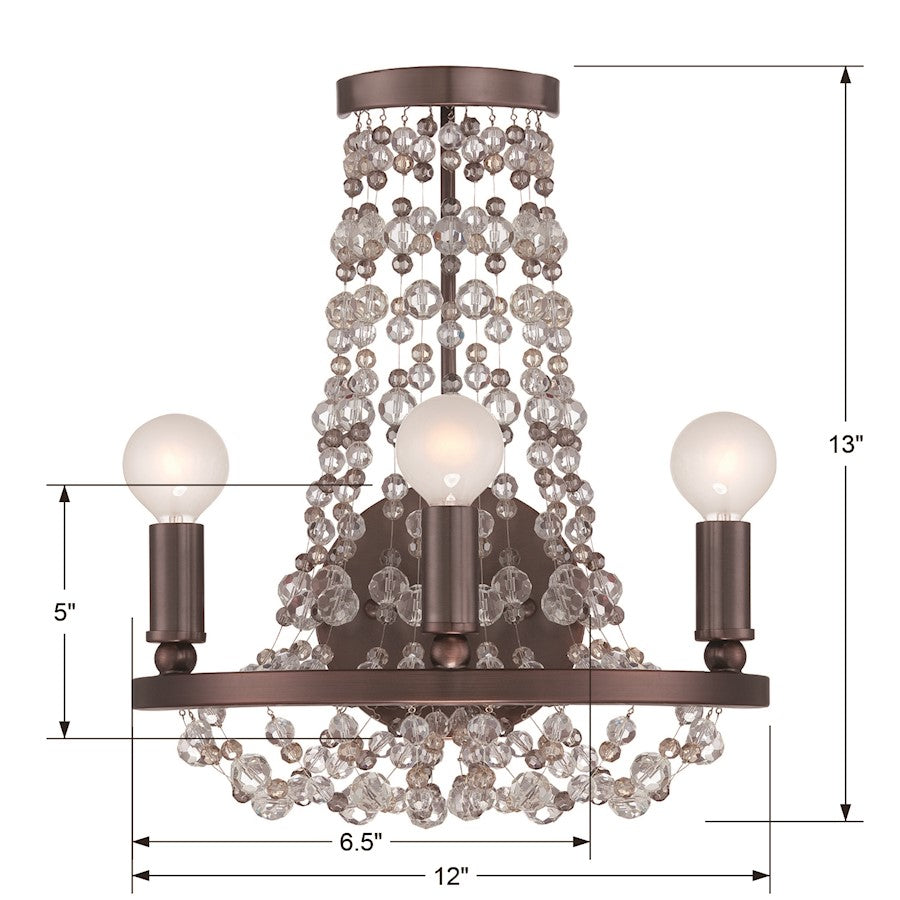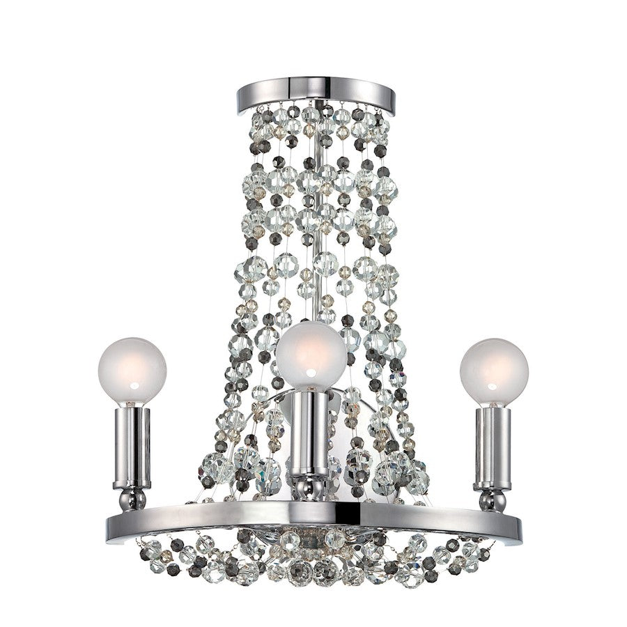 Inspired by jeweled necklaces, the Channing collection is a chic accent for your elegant home. With draped crystals of varying sizes and colors beaded between golden teak, golden shadow and clear beads, and finished in a chocolate bronze or polished chrome, the collection offers a unique design. This sconce is perfect for a grand hall way or even a quant living room. Either way this stunner will add a transitional accent to any space.