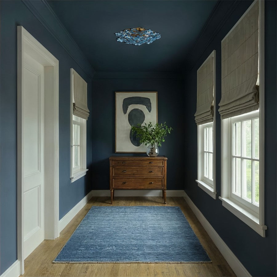 The Esme collection is a modern take on the iconic Sputnik design, blending vintage sophistication with a fresh, dynamic twist. Its array of brass rods extend outwards, culminating in hand-blown art glass shaped like delicate flower petals. This striking piece transforms a room, offering a different visual experience whether it's illuminated or not—sophisticated and bold when off, subtly whimsical and glowing with warmth when on. Esme's timeless charm and playful elegance stand out in any space.