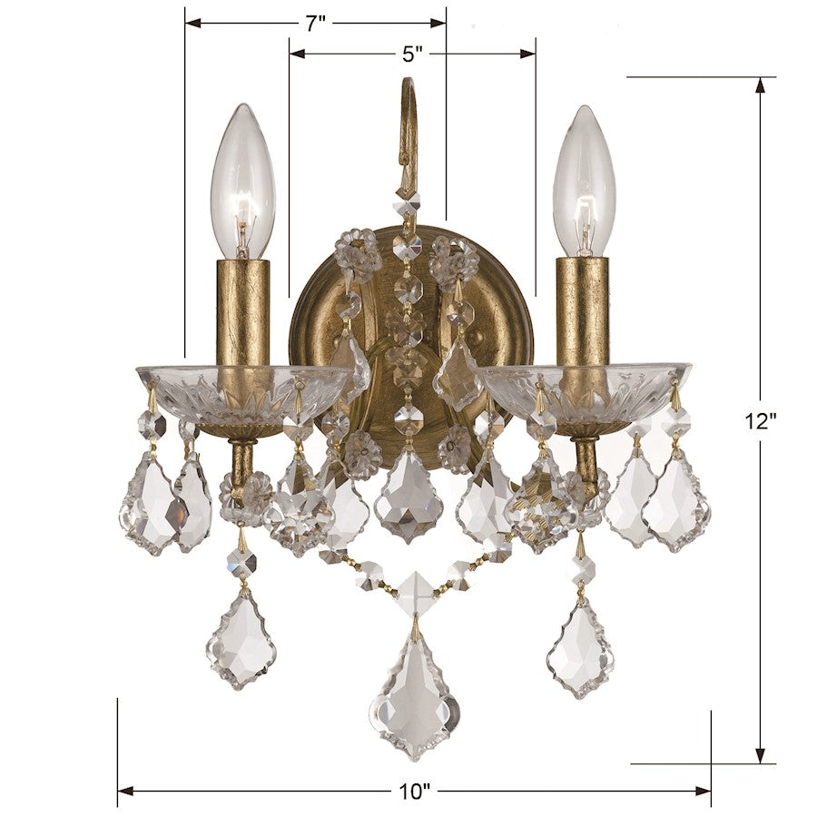 Urban industrial wrought iron fused with whimsical crystal, contrast for the perfect modern chic design in the Filmore collection. Featuring a base finished in antique gold outfitted in luxurious clear hand cut crystal, it is the perfect modern traditional mix.This sconce will add a bit of industrial edge to any room in the house. Whether in a formal or relaxed setting this fixture is sure to be the focal point.