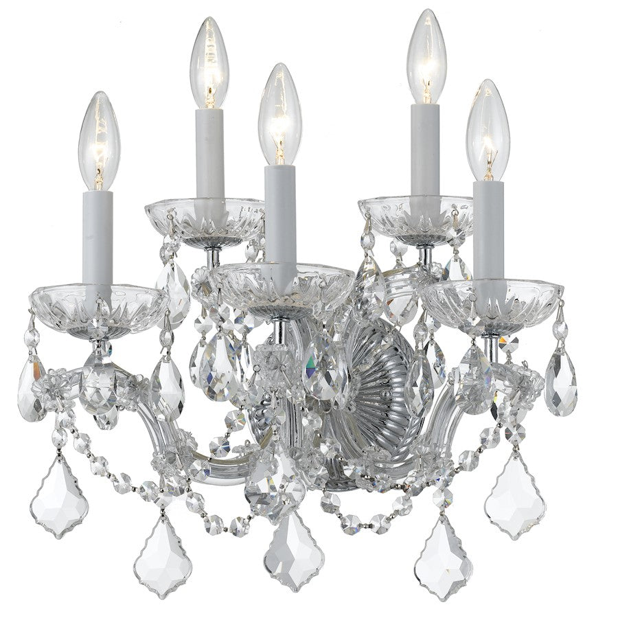 Draped in an abundance of crystal, the Maria Theresa collection is the epitome of high style. The fixture is stunning with glass arm frame decked with strands of faceted cut crystal. The fixture showcase opulence and decadence and is the perfect traditional accent to any space. Whether in a living room, or even closet or hallway, this fixture bring a luxurious addition to any decor.