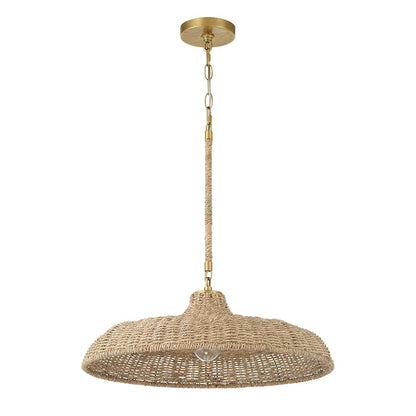 The Odessa collection showcases a skillfully artisan-crafted shade made from woven lake grass, known for its natural textures and warmth. The design features a gold-accented and wrapped stem, adding a refined touch to the organic material. Woven lake grass is durable and flexible, making it a practical choice for a lighting fixture that combines elegance with functionality. The Odessa brings a nature-inspired charm to any space, seamlessly blending rustic beauty with sophisticated details.
