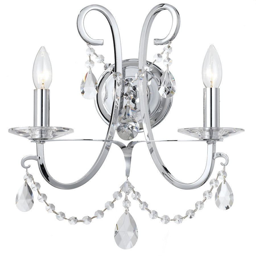 Elegant shades are enriched with ornate crystal for an updated look to this classic sconce in the Othello collection. This sconce features detailed scroll metal work finished in polished chrome and is draped with stunning crystal. Perfect for a living room, dining room, or even an entryway, this fixture will be a conversation starter in any space.